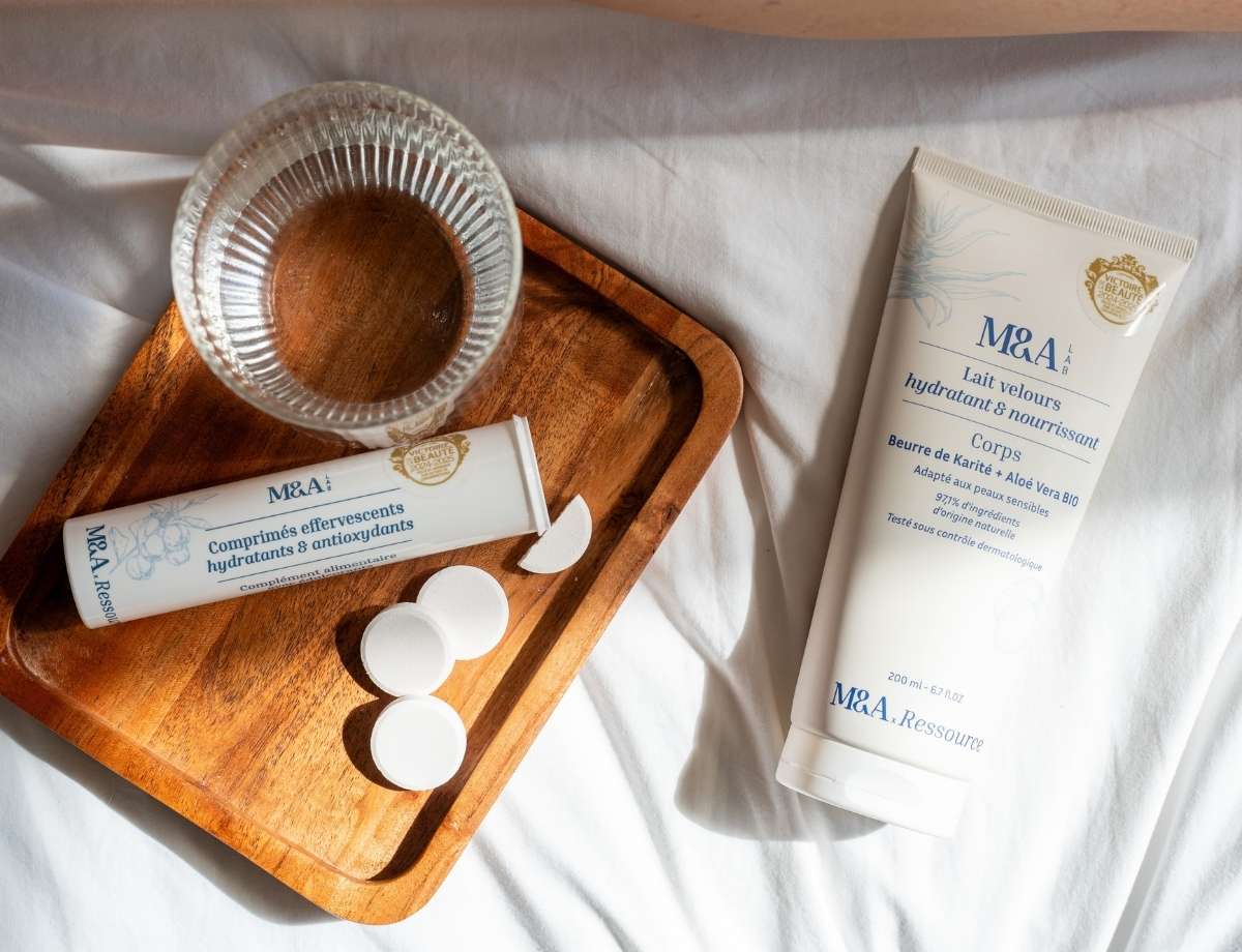 Un comprimé qui se dissout dans l’eau et recharge les cellules en hydratation.
